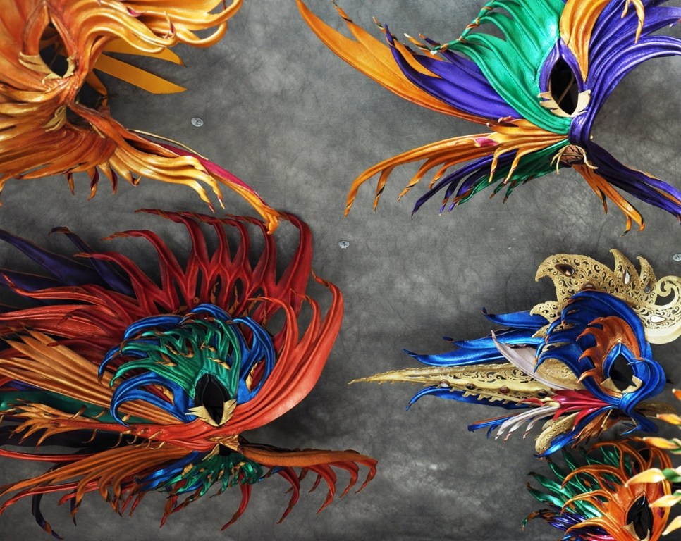 Next up is Munchkin’s pick for “Best of the Day”. She spotted these colorful masks by John Flemming, fittingly from New Orleans, from twenty yards…I was surprised when we discovered they were crafted from leather! To add to the booth attraction, the artist was very gracious and allowed her to try on her favorite. Excitement could not be contained! (And Mommy only got a little nervous when the 4-year old was handling the expensive piece of art…) The craftsmanship on the mask was impeccable…I was secretly jealous that I couldn’t try one!