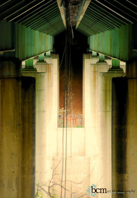 I have always considered myself to be an artist, even tough at times over the past decade my creative pursuits may have remained dormant. About two years ago, on an especially stressful day, I took a walk. Venturing around a few places in a local park that were new to me, I came across a path that reached underneath an expressway bridge. The path was only about four feet wide and looked over a deep ravine to train tracks below. Looking across the ravine, I saw this: