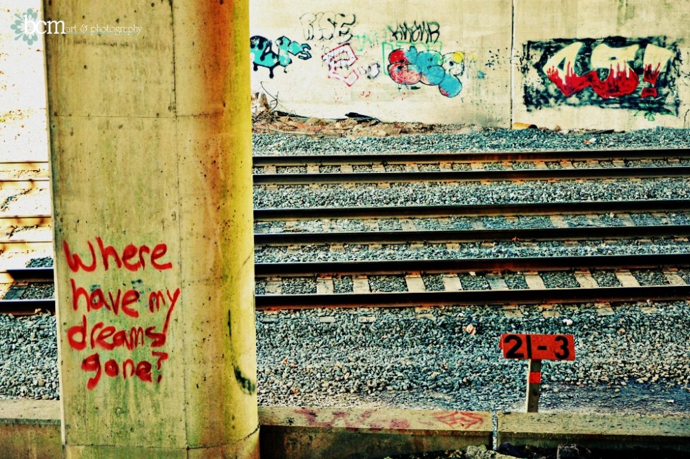 In this last image from under the bridge, I especially like the melding of the concrete and the tag…it is almost difficult to tell which happened first – the paint or the distress to the support beam.