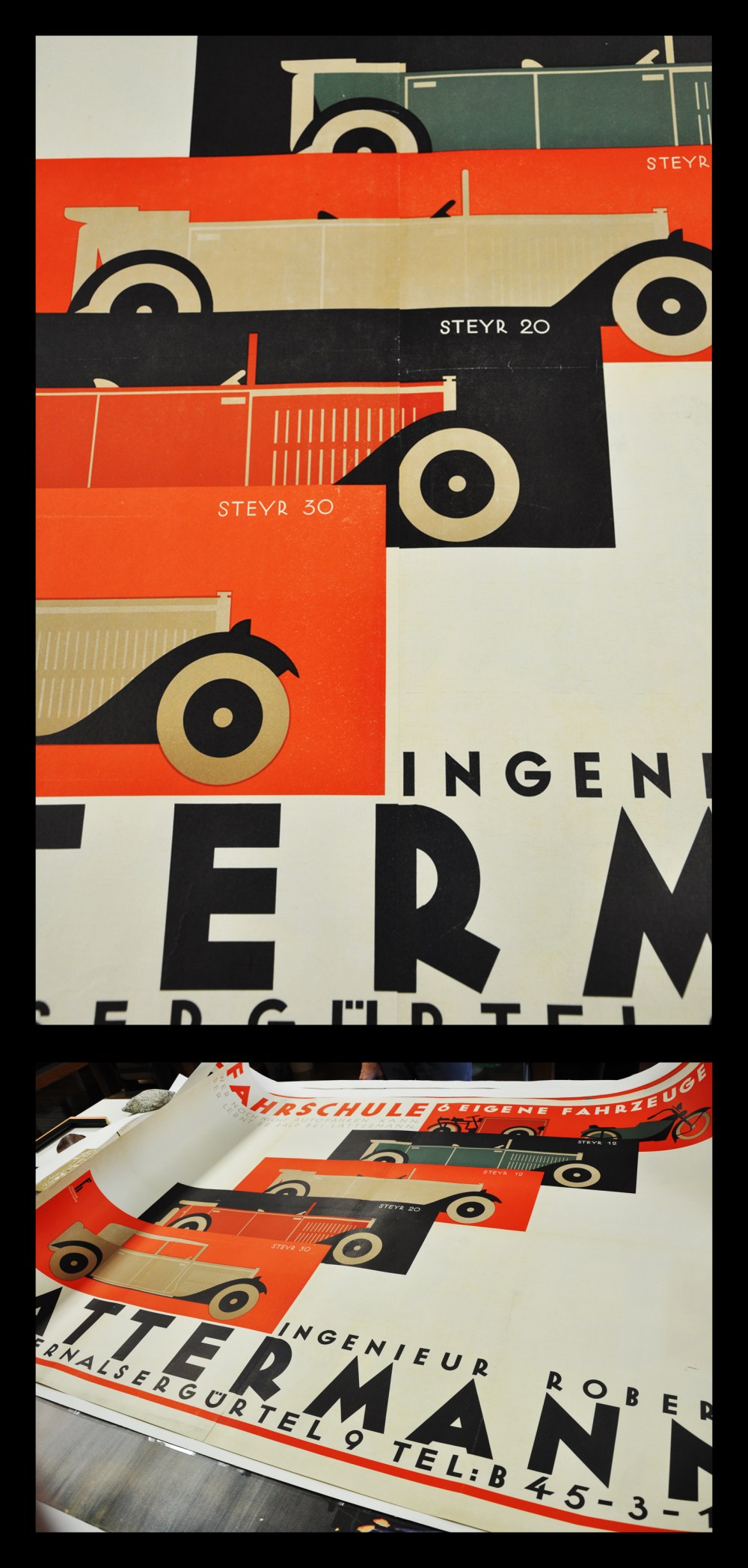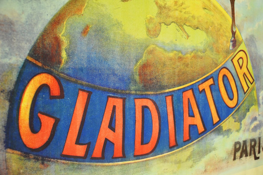 Working at Framers’ Workroom, I get to see a great variety of artwork, photographs and posters from clients that visit the shop. One of my favorite items is a large set of vintage posters. They are bold, kitschy and colorful. The posters feature airline advertisements, travel destinations, plays and celebrities. They were acquired through an auction house. The aging paper is preserved by adhering the original poster to a canvas backing. I find their use of color and lettering to be captivating – a kind of jolt to the system of someone who is conditioned to seeing current print advertisements, such as movie posters, that has strayed from the sole use of illustration to incorporating the digital image. Don’t get me wrong, as a photographer, I am quite fond of the digital image. But, also as an artist, I am inspired by the hand-lettered text, the use of words as part of the image and the color that seems to jump off of the print.